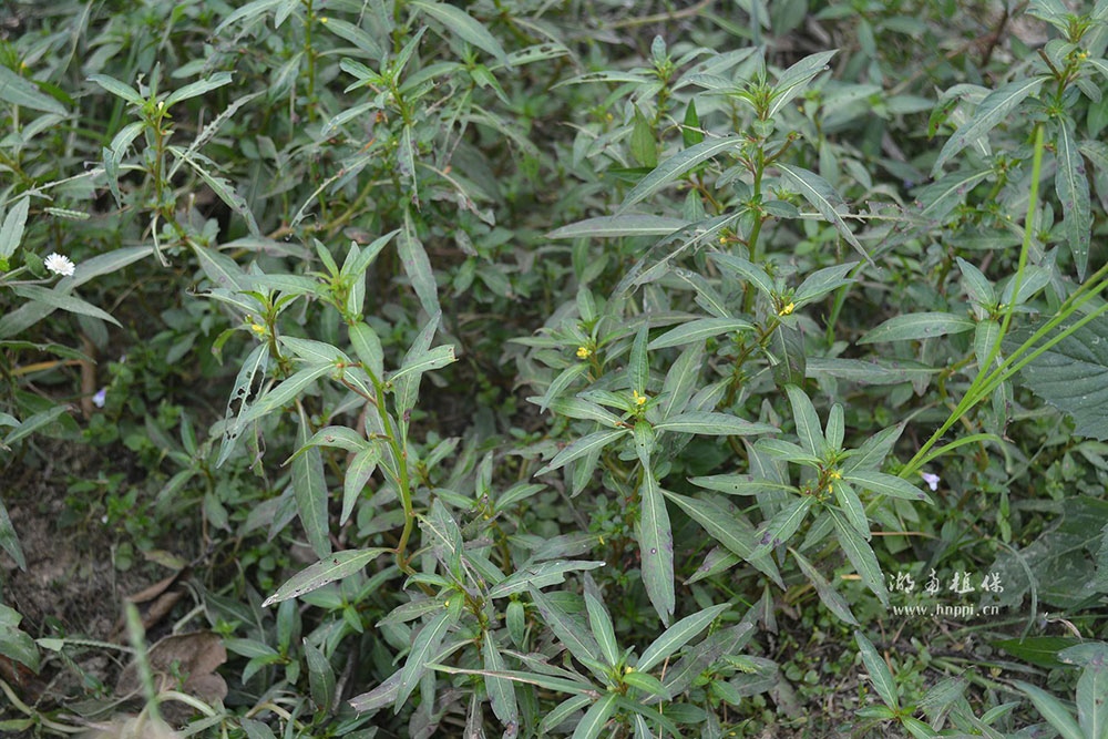 一年生直立草本;茎高25-60厘米,粗2.5-4.5毫米,下部圆柱状,上部四棱形,常淡红色,近无毛,多分枝,小枝近水平开展。叶狭椭圆形,长3-9厘米,宽1.2-2.8厘米,先端锐尖或稍钝,基部狭楔形,在下部骤变窄,侧脉每侧5-11条,至近边缘渐消失,两面近无毛或幼时脉上疏生微柔毛;叶柄长5-18毫米,稍具翅;托叶几乎全退化。萼片4,三角状卵形至披针形,长1.5-3毫米,宽0.8-1.2毫米,疏被微柔毛或近无毛;花瓣黄色,匙形,长1.2-2毫米,宽0.4-0.8毫米,先端近圆形,基部楔形,雄蕊4,花丝长0.8-1.2毫米;花药扁圆形,宽0.4-0.5毫米,开花时以四合花粉直接授在柱头上;花柱长约1毫米;柱头近卵状或球状,径约0.6毫米;花盘围以花柱基部,稍隆起,无毛。蒴果四棱形,长1.2-2.3厘米,粗1.5-2毫米,淡褐色,无毛,熟时迅速不规则室背开裂;果梗长3-5毫米。种子呈一列横卧于每室内,里生,卵状,长0.5-0.6毫米,径约0.3毫米,顶端稍偏斜,具小尖头,表面有横条排成的棕褐色纵横条纹;种脊线形,长约0.4毫米。